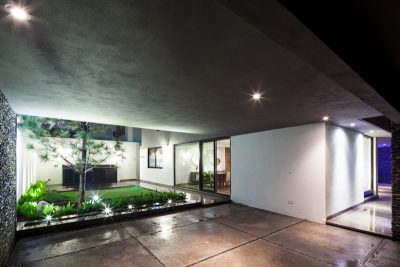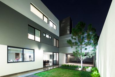 Se trataba de una casa en esquina, emplazada en medio del terreno que generaba dos patios desarticulados. Se comenzó por ampliar el primero de los patios, y obligar a que todas las zonas de la casa giraran alrededor del mismo. El segundo, se redujo, pero aloja los servicios y una nueva escalera que articula toda la casa y remata con un tercer piso social, que se abre a una terraza. Desde ahí, se aprovechan las vistas hacia el Cerro de las Mitras, el Cerro de la Silla, y la Sierra Madre.